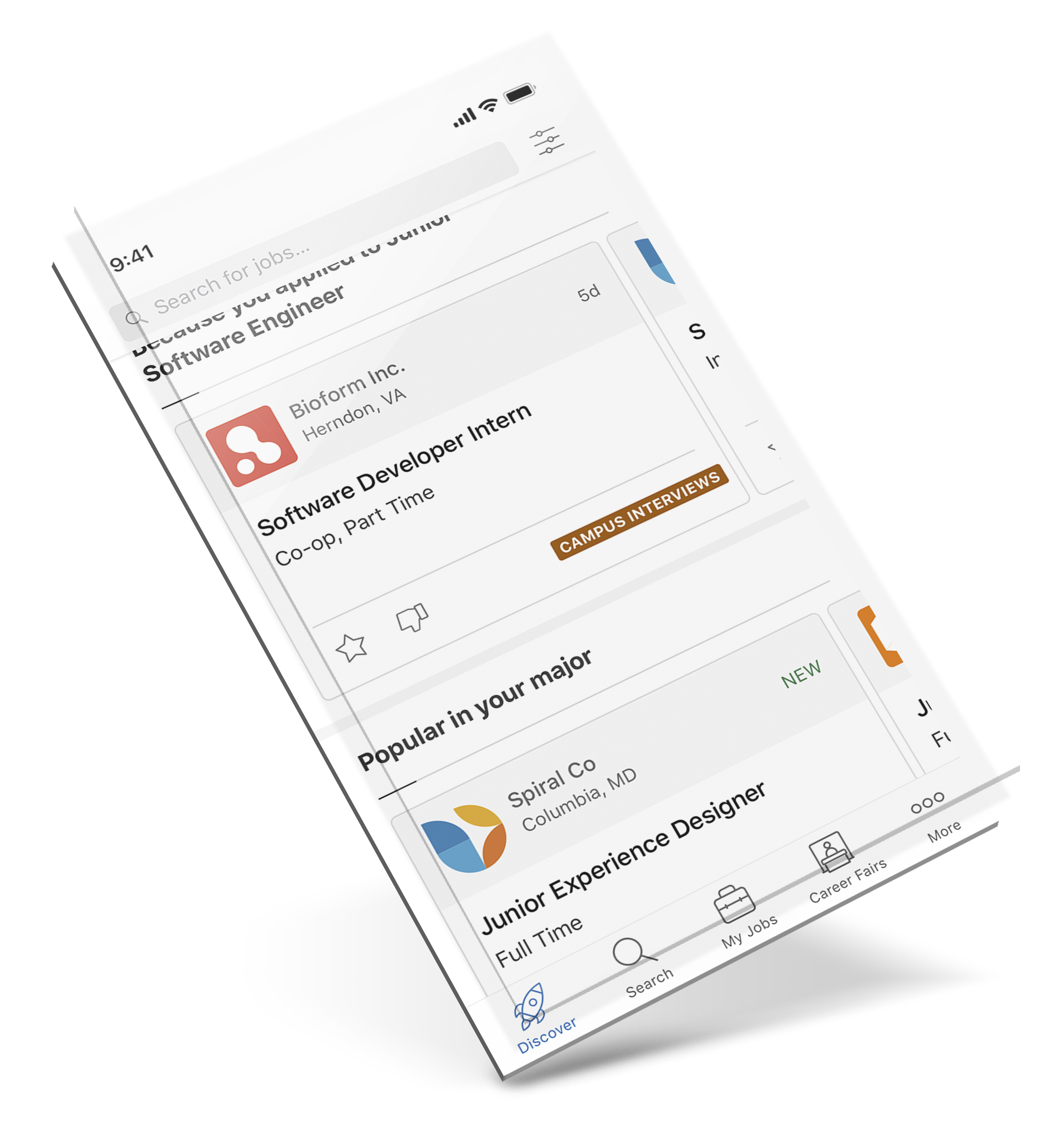 إذا كانت كليتك تستخدم إدارة خدمات المسيرة المهنية من Symplicity، فإن هذا التطبيق المحمول هو رفيق أساسي لموقع خدماتك المهنية. باستخدام هذا التطبيق يمكنك الحصول على توصيات العمل والتدريب وفق اهتماماتك، البحث بسرعة، وضع علامات على المفضلة والتقدم إلى الوظائف والتدريب، تحديد الجدول الزمني للمقابلات في الحرم الجامعي، العثور على وحضور أنشطة التوظيف، إرسال سيرتك الذاتية للمراجعة، تحديد الجدول الزمني لمواعيد المشورة المهنية وأكثر. يعتمد توفر الميزات على مشاركة وإعدادات كليتك.