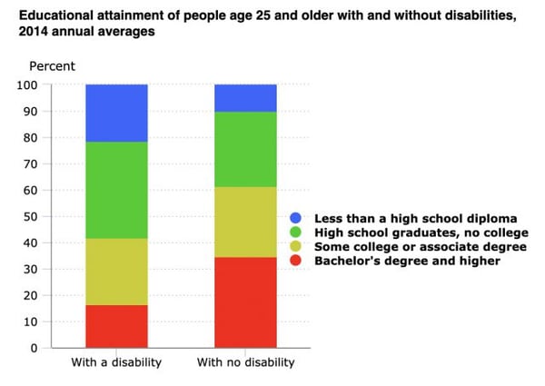 All of these challenges can contribute to a decrease in retention of students with disabilities at their higher education institution. According to the United States Department of Labor, “people with a disability are less likely to have completed a bachelor’s degree than people with no disability.” These statistics specifically indicated that “Among people age 25 and older in 2014, 16.4 percent of people with a disability had completed at least a bachelor’s degree. By comparison, 34.6 percent of people with no disability had completed at least a bachelor’s degree.” Students with disabilities that aren’t able to have their need for accommodations met may feel more inclined to drop out than to not complete their bachelor’s degrees. Addressing these concerns is imperative to improving retention among students with disabilities.