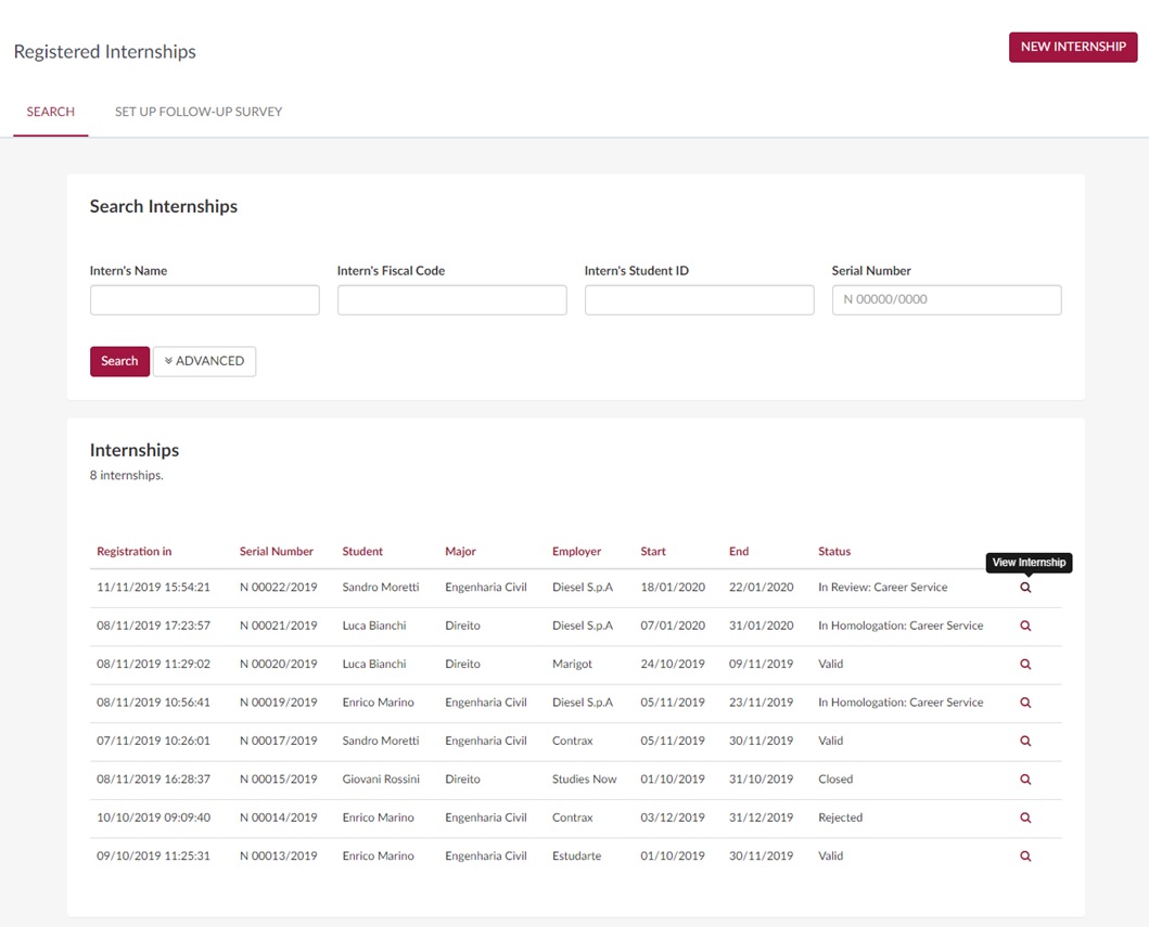 Symplicity SIM (Symplicity Internship Management) has been designed to manage internship approval, tracking and evaluation. SIM caters for the management of the signing and approval process of legal agreements between employers and universities. This feature also allows for the tracking of internship agreement forms signed between students, the university, and the employer.  This enables universities to comply with local rules and regulations around internship management.